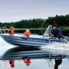 Stowage space in the stern and middle seats. Has aluminium floor plate, bathing ladder, automatic bilge pump, steering console, electrical system, gunwale toe rail and grab rails. Made in high-quality corrosion-resistant aluminium corresponding to that used in aircraft. An environment friendlier choice of boat. Approved by Det Norske Veritas Show certificate. Securmark* security marked.