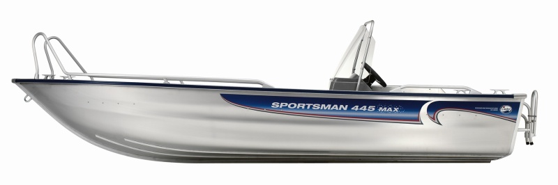 SPORTSMAN 445 MAX. A planing, family boat suitable for sea and lake fishing as well as waterskiing. For motors of up to 30 hp.